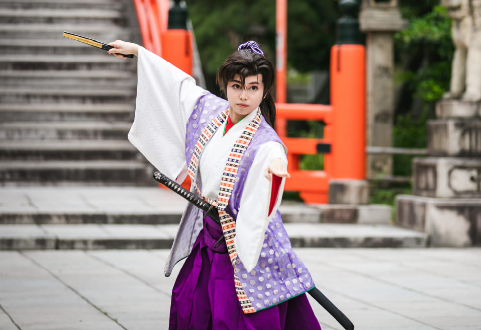 伝統的な技術を体得し凛とした女性の美しさを持ちつつ、男性のように勇ましい姿をもつ女剣士。男性の強さやカッコ良さだけではなく女性だからこそ出来る強さや色気、勇ましさと柔らかさを独自で表現します。