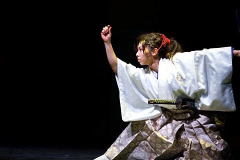 殺陣専門のパフォーマンス集団です。迫力、気迫、息をするのをわすれる程の緊張感と、見終わった時の爽快感。激しい振り付けでの動的な美しさや、構えや斬り終えた形の静的な美しさ。生のパフォーマンスならではの息づかいや間の緊張感、舞台とお客様の一体感が魅力です。